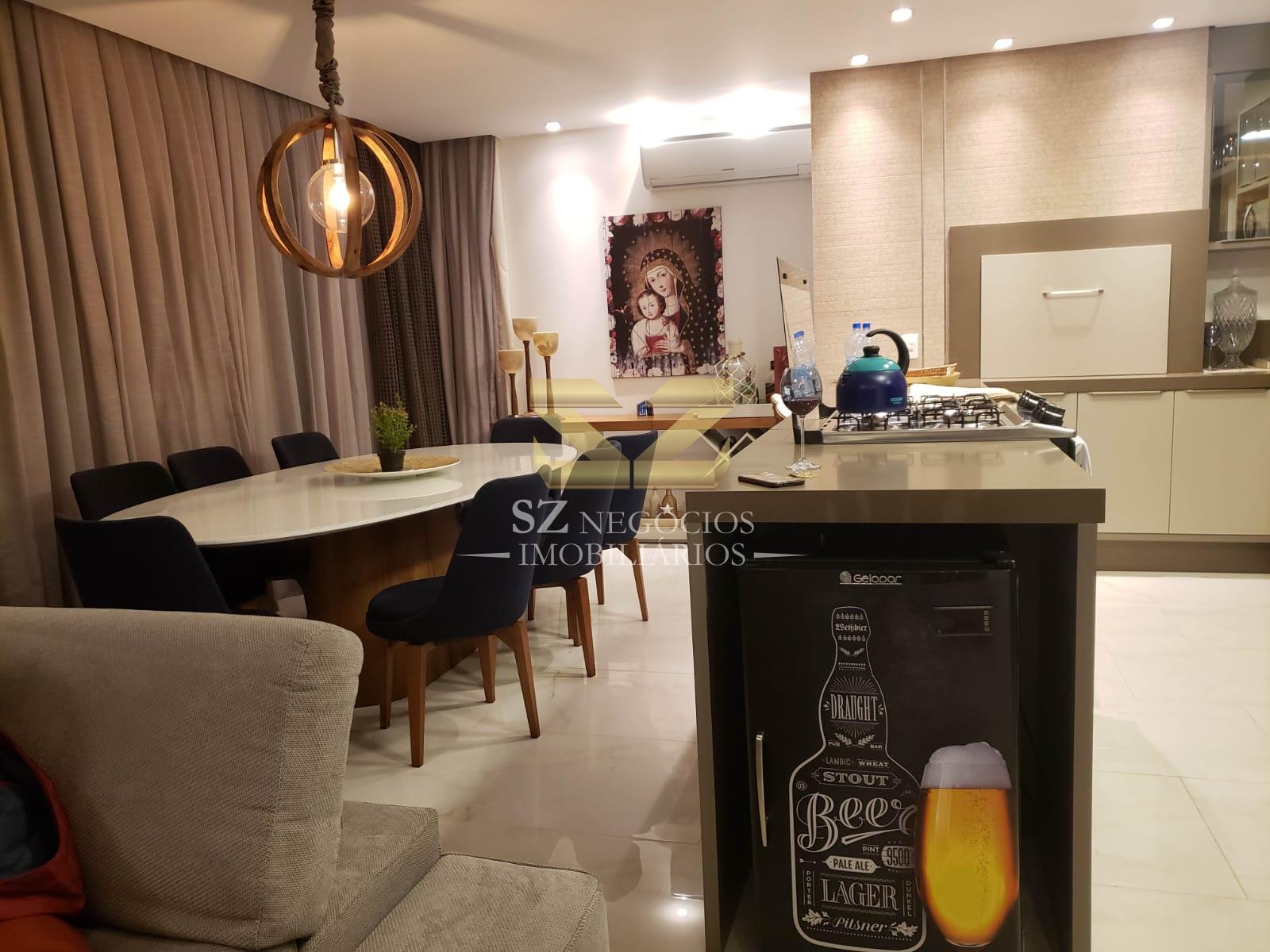 Mobiliado, 03 suítes, living integrado, sala de estar, sala de jantar, cozinha, lavabo, área de serviço, espaço gourmet com churrasqueira á carvão e 03 vagas de garagem.