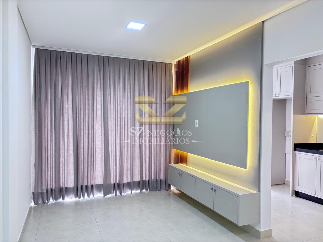 Hall de entrada, sala de estar / jantar, sacada, cozinha, área de serviço, circulação, banheiro social e duas (02) vagas de garagens.