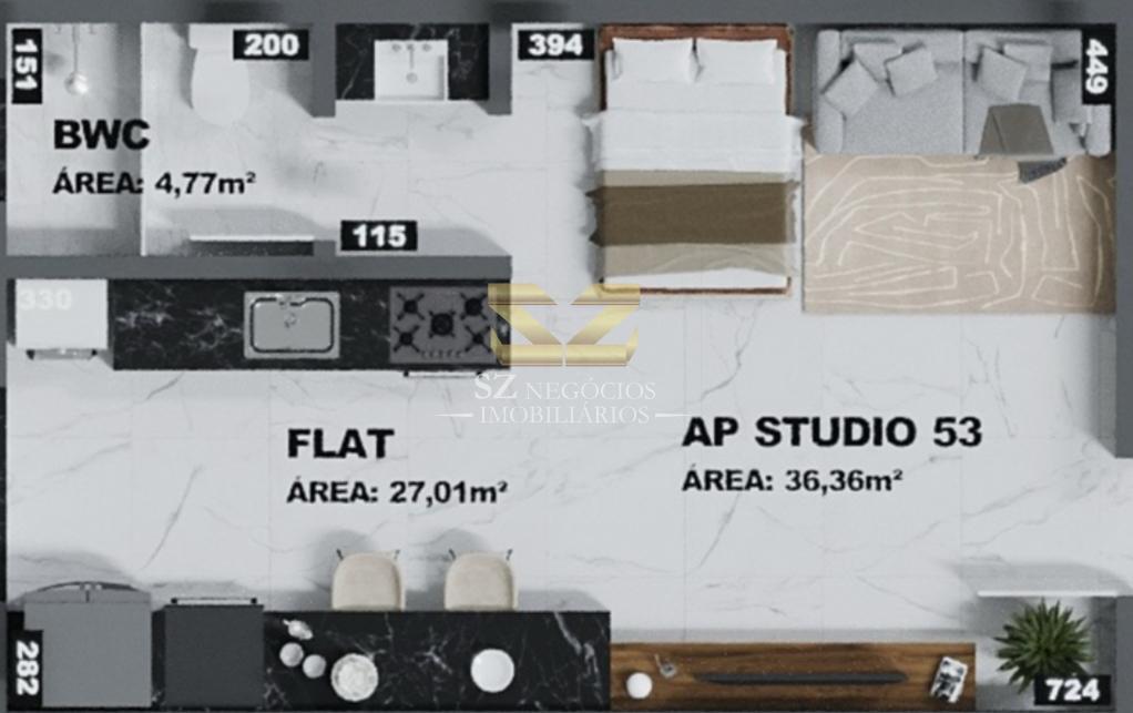 - Studios (Flat): 35,70m2 a 36,36 m2