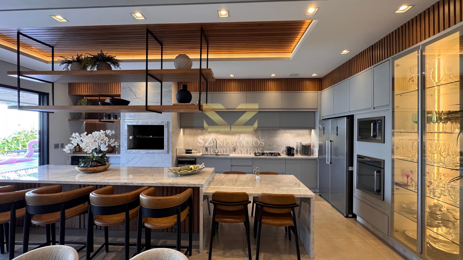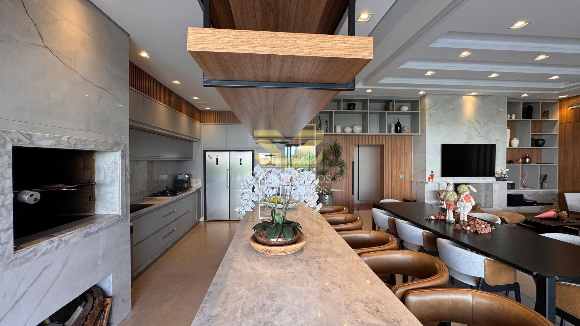 A cozinha gourmet é um dos grandes destaques, oferecendo espaço amplo, churrasqueira, bancada, eletrodomésticos e mesa para até 08 pessoas ideal para receber amigos e familiares.