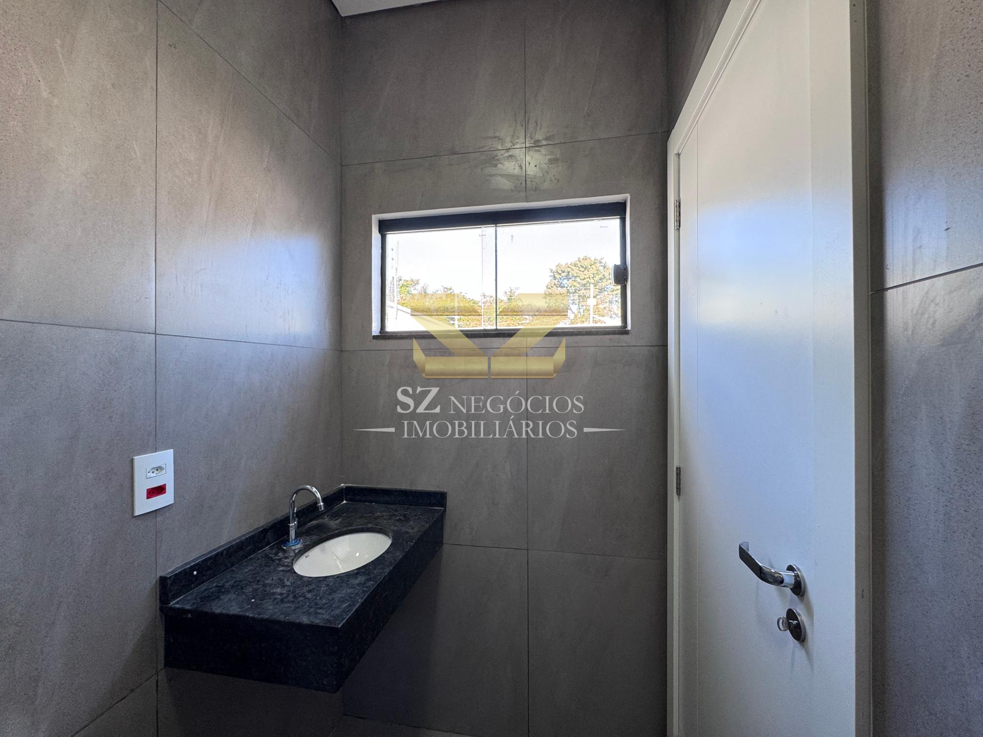 Sala de estar, cozinha, sala de jantar, banheiro social, circulação, área de serviço, dormitório, suíte, passagem lateral e 01 vaga de garagem
