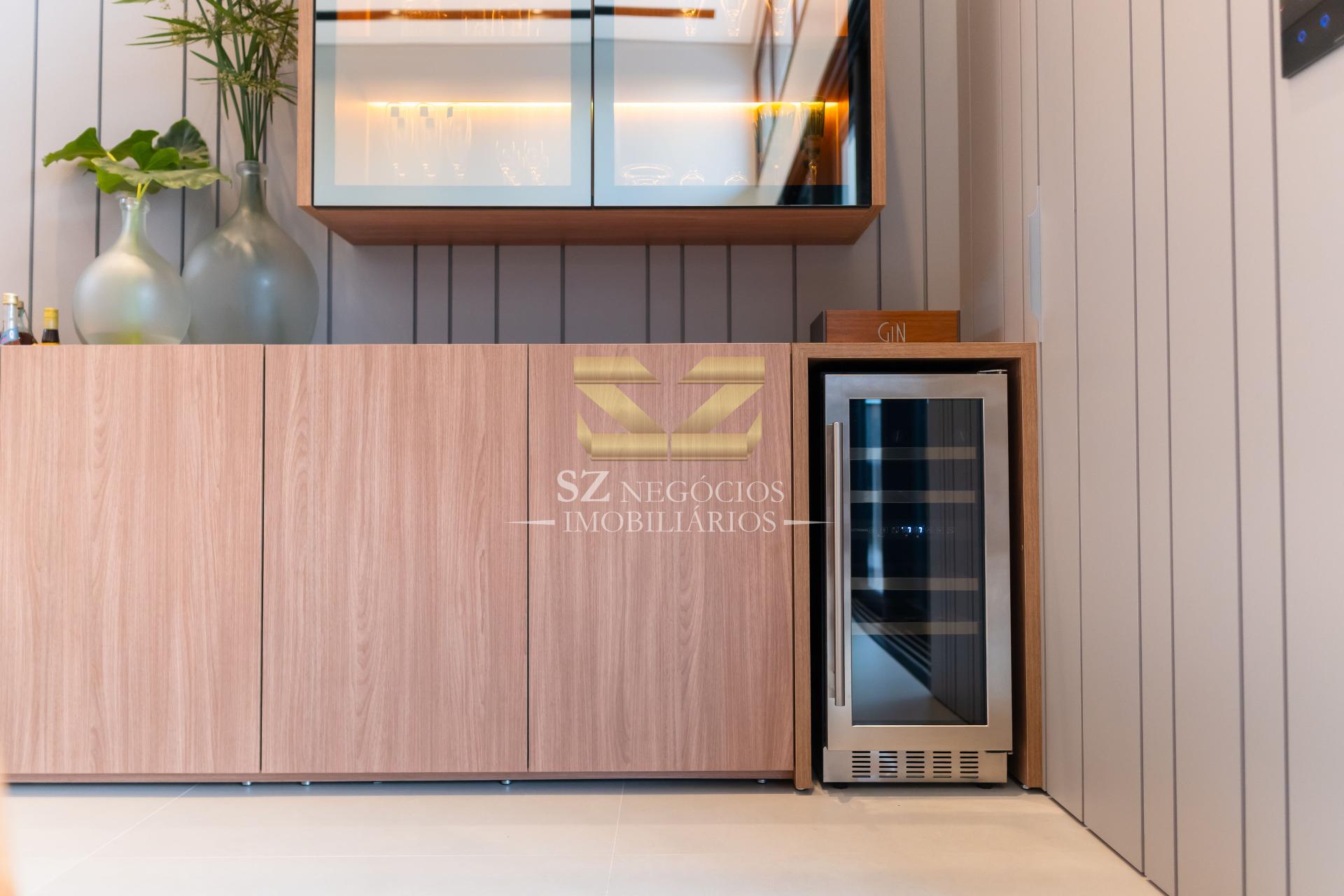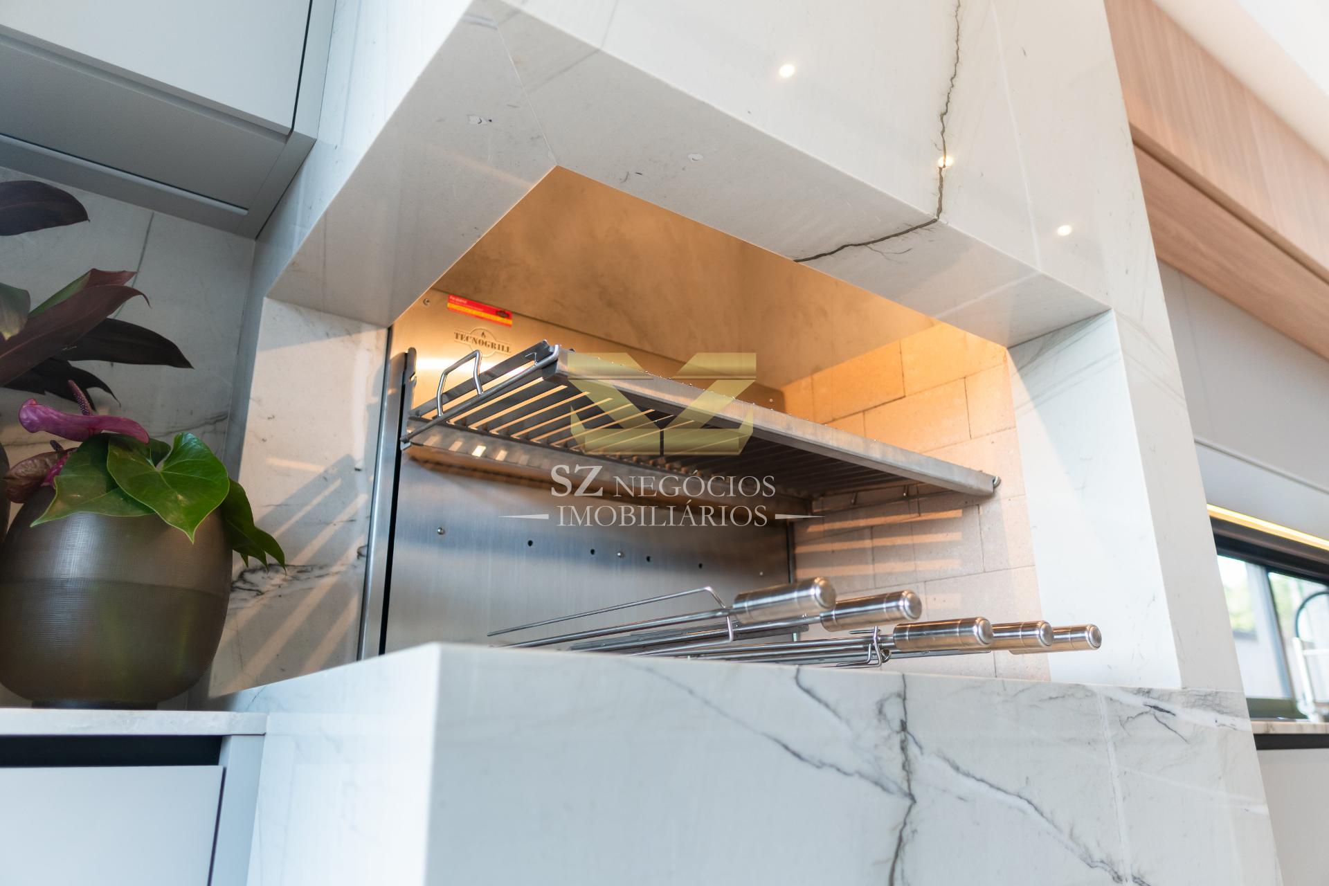 No espaço gourmet, a churrasqueira elétrica e os eletrodomésticos da linha Eletromec proporcionam praticidade e sofisticação.