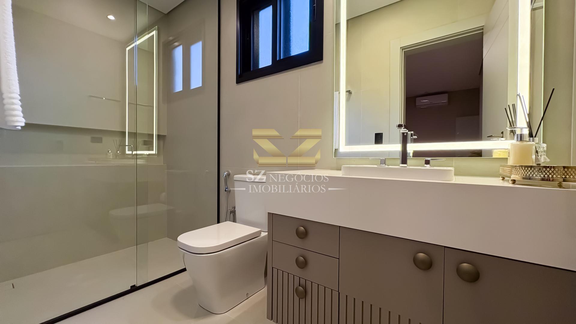 Imóvel com 4 suítes privativas com closet, incluindo uma suíte master com closet amplo e TV de 65.