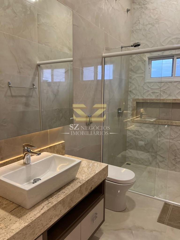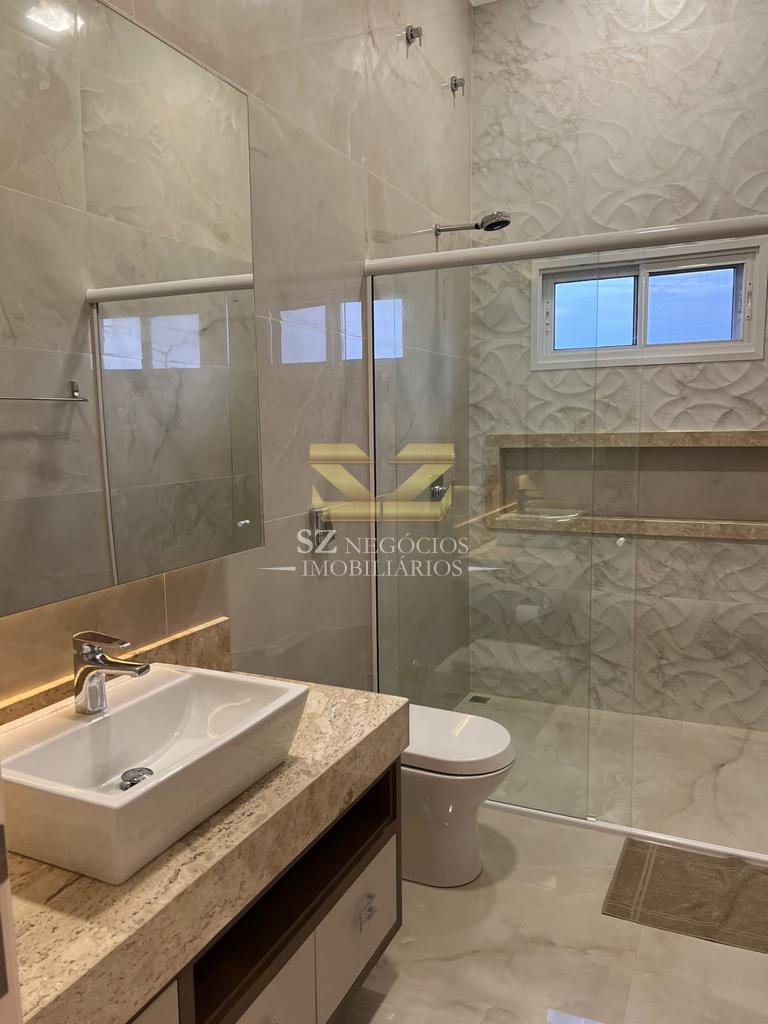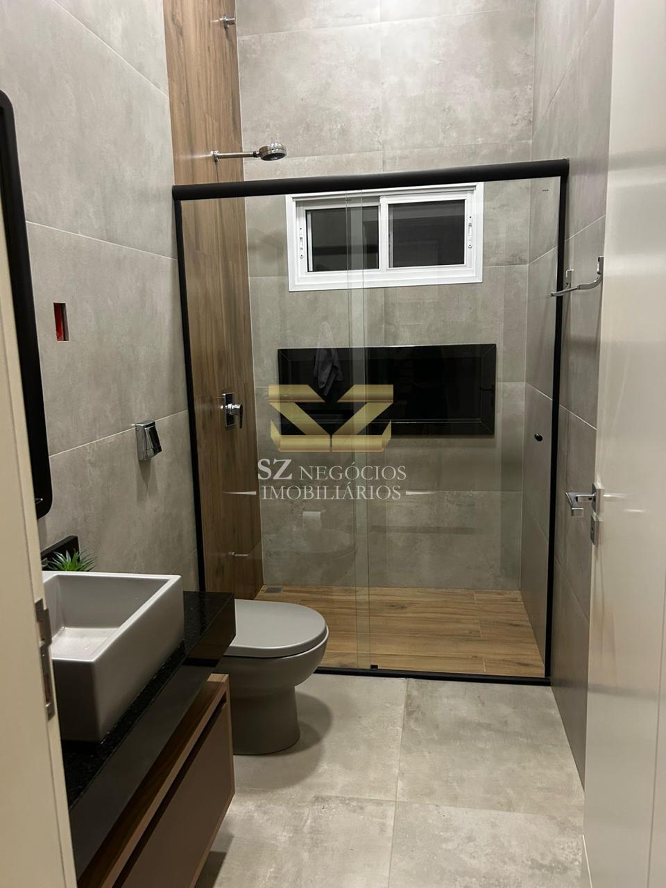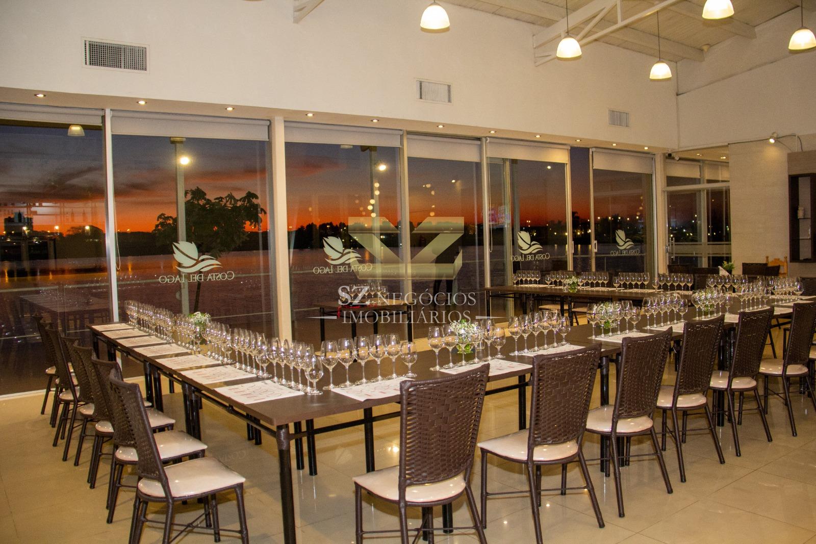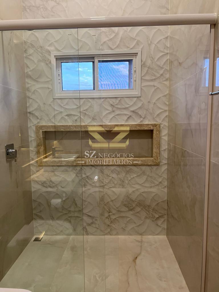 - Cozinha/área gourmet (móveis planejados, bancada em granito São Gabriel, geladeira Whirlpool de 554 litros, micro-ondas, forno, coifa, churrasqueira elétrica Tecnogrill, refrigerador expositor);